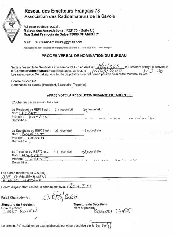 Procès verbal de réunion du C.A. en date du 16 mai 2025.